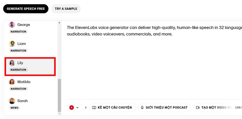 - Người làm podcast và sản xuất sách nói: Để thu hút khán giả, người làm podcast và nhà sản xuất sách nói có thể tận dụng nhiều loại giọng nói AI của ElevenLabs. Dù bạn cần giọng nói dịu dàng cho câu chuyện trước khi ngủ hay giọng năng động cho podcast, ElevenLabs đều đáp ứng được nhu cầu đó.