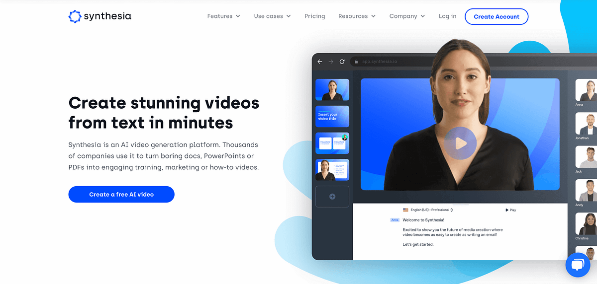 - Synthesia – Tạo video với người thật, hỗ trợ đa ngôn ngữ, phù hợp cho giáo dục và marketing.